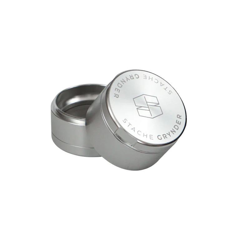 The Stache Grynder is made to be the last metal herb grinder you will ever need. The Grynder is rich with innovative changes made with the average consumer in mind. Dry herbs today tend to be richer in terpenes and denser in structure, much different from a century ago when the first herb grinders were popularized. Old designs cause friction and buildup of various plant materials, leading to a loss in quality of the dry herb before it can be consumed. The Stache Grynder is designed to mitigate all of these issues with its innovative design that features: